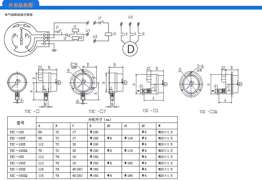 | 电接点压力表 | YX-60 | M14×1.5 | 2.5 | 0~0.6~2.5~40 |